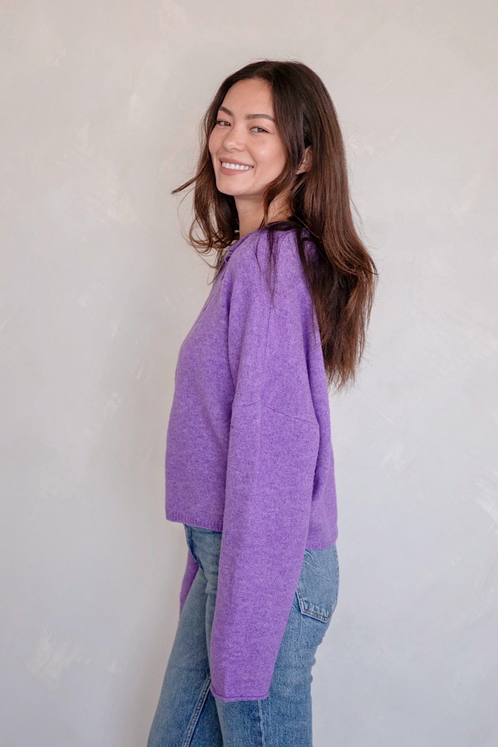 Hailey Button Down Cardigan - Purple