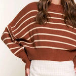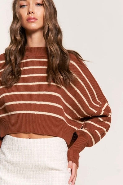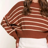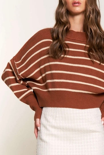 The Street Stripe Slouchy Cropped Sweater - Brown