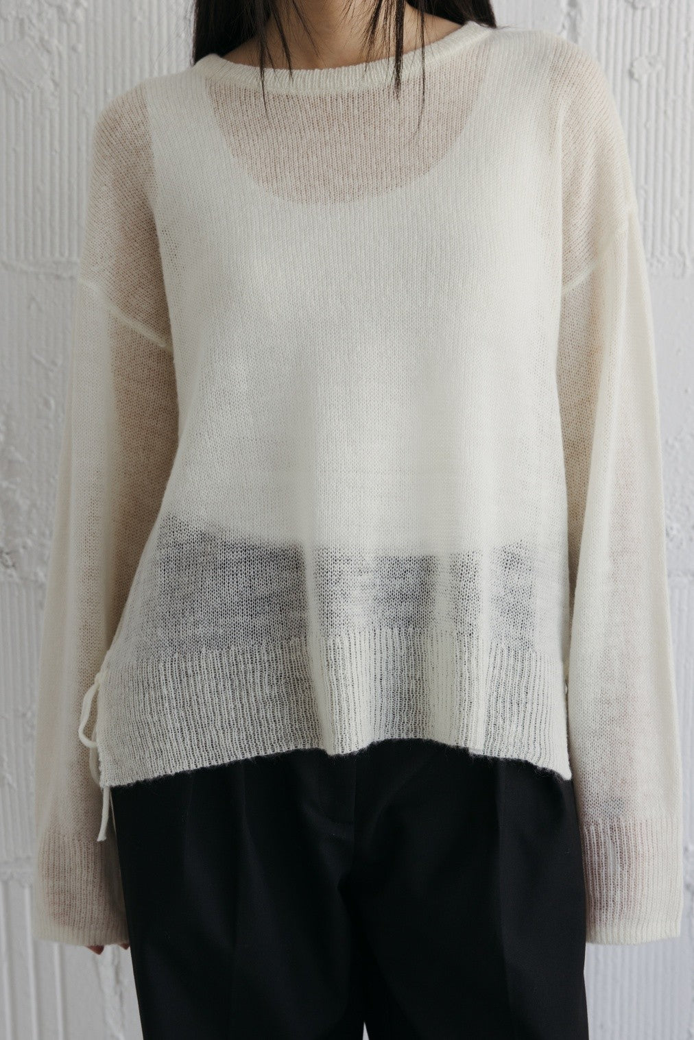The Wednesday Whisper Sheer Pullover offers a blend of airy comfort and stylish design. Crafted from lightweight, translucent knit with a casual crew neck and playful side ties, it's perfect for a relaxed yet fashionable summer look. The elegant color gradient adds a touch of sophistication to this breezy, versatile top.