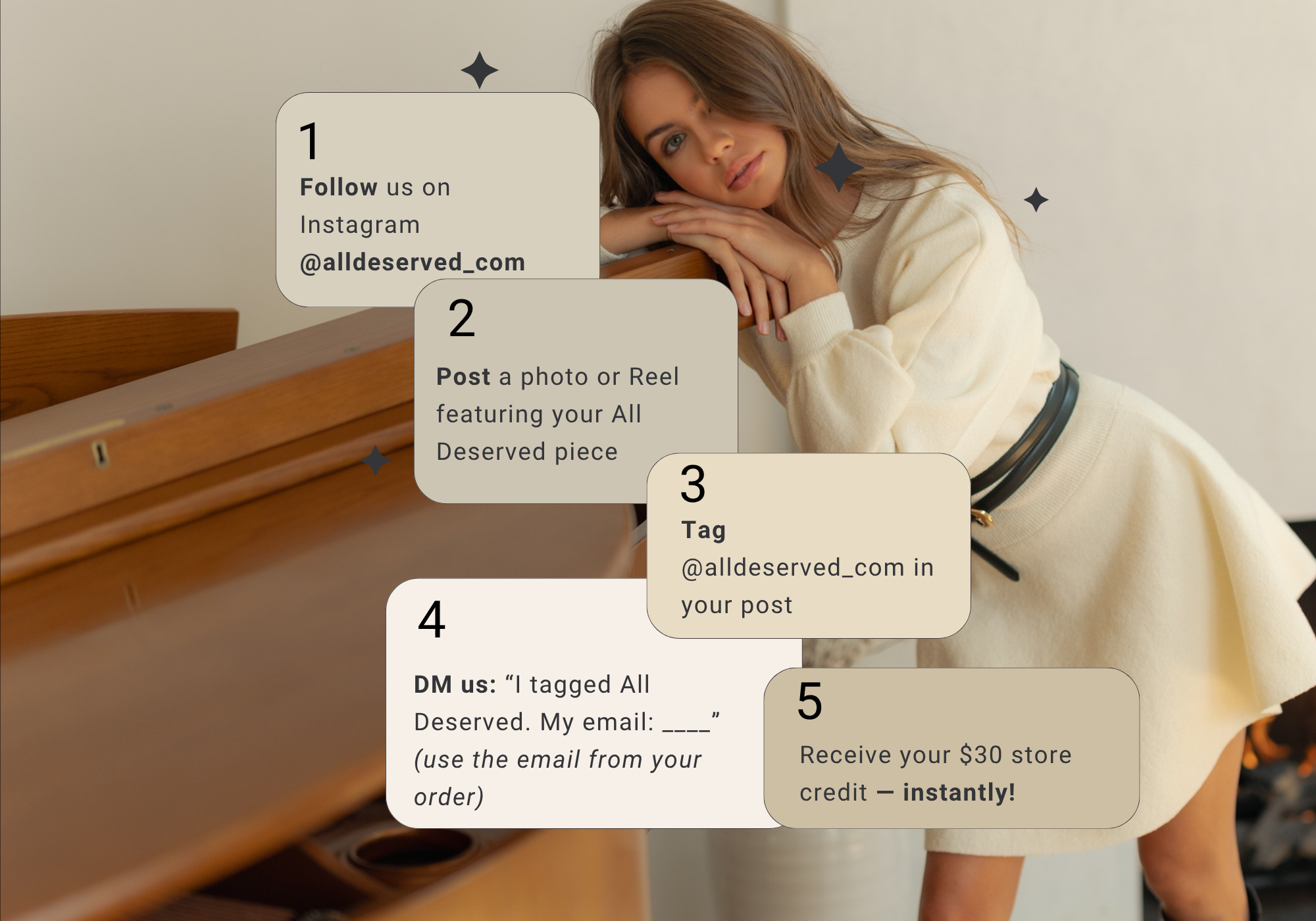 Already shopped with us? Earn $40 in real store credit—$30 for Instagram + $10 for a review. It’s fast to earn, spend instantly, and never expires.