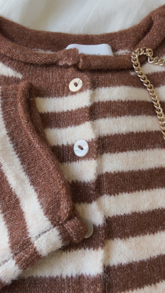 Hailey Button Down Cardigan - Striped - Ivory-Brown