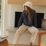 Heartbeat Patterned Cropped Sweater - Navy